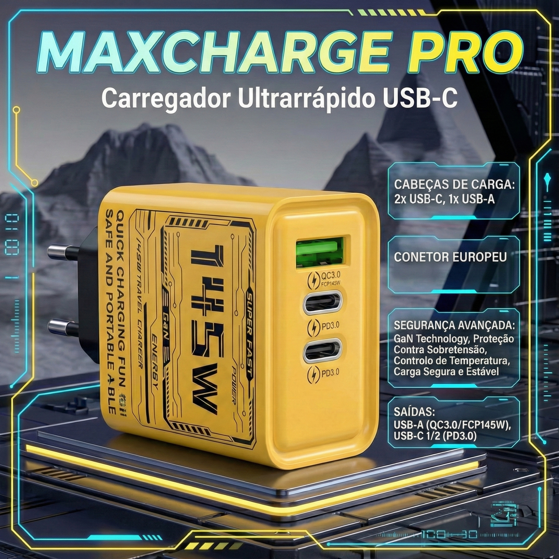 MaxCharge Pro – Carregador USB-C ultrarrápido